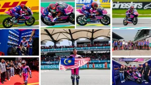 🇲🇾 SEPANG, 26 Oktober 2025 – Hakim Danish mengakui gembira sepanjang persembahannya dalam perlumbaan Kejuaraan Motosikal Dunia Moto3 di Grand Prix Malaysia (GP), biarpun gagal menamatkan perlumbaan tersebut selepas jenteranya mengalami kerosakan dan memaksanya menamatkan perlumbaan lebih awal. Meskipun terpaksa bersara dari perlumbaan, pelumba berusia 18 tahun itu, yang bersaing bersama pasukan AEON CREDIT SIC RACING MSi, berjaya membuktikan kemampuannya untuk bersaing di peringkat tertinggi dengan catatan pusingan terpantas perlumbaan, iaitu 2 minit 11.066 saat.