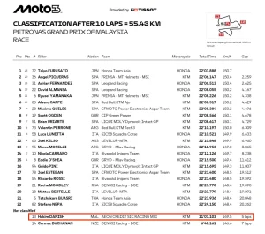 Hakim Danish had the opportunity to finish the race and score points, as the Terengganu-born rider was fighting within the top 10 at the time, which could have earned him at least six points. This impressive performance is a clear indication of his potential ahead of a full-season campaign in 2026, following the confirmation of his contract with the MSi Racing Team. Hakim Danish acknowledged that his team is currently investigating the main cause of his bike suddenly losing power at Turn 1, which dashed his hopes of achieving a strong finish in front of thousands of Malaysian fans who packed the Sepang International Circuit (SIC).