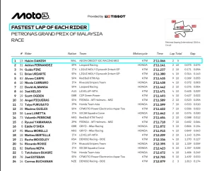🇲🇾 “Saya terpaksa menamatkan perlumbaan lebih awal kerana menghadapi masalah teknikal pada jentera saya. Buat masa ini, saya masih belum pasti puncanya kerana pasukan saya sedang memeriksa jentera untuk mengenal pasti masalah tersebut; motor saya tiba-tiba hilang kuasa di selekoh pertama, jadi saya terpaksa berhenti lebih awal. Walaupun begitu, saya rasa sangat gembira kerana dapat bersaing dengan pelumba-pelumba terbaik dunia, termasuk pelumba World Championship. Ini adalah pengalaman berharga kerana mereka semua laju, dan saya dapat menilai tahap persaingan di pentas dunia.